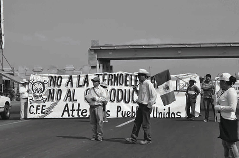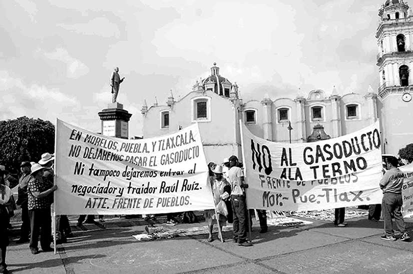 Espejo 10: En Huexca, Morelos, zona nahua del oriente del estado, fue impuesta una de las dos Termoeléctricas en zona de riesgo volcánico que forman parte del Proyecto Integral Morelos, promovidas por la empresa Abengoa y la Comisión Federal de Electricidad, con el apoyo de los tres niveles de gobierno, el Ejército Mexicano y la policía estatal. Asimismo como parte de dicho proyecto se busca construir un acueducto para la extracción del agua del río Cuautla, que afectará a 22 ejidos del municipio de Ayala.