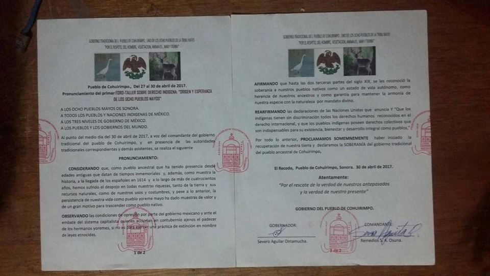 pueblos Mayos del Estado de Sonora, las huestes del sistema de gobierno