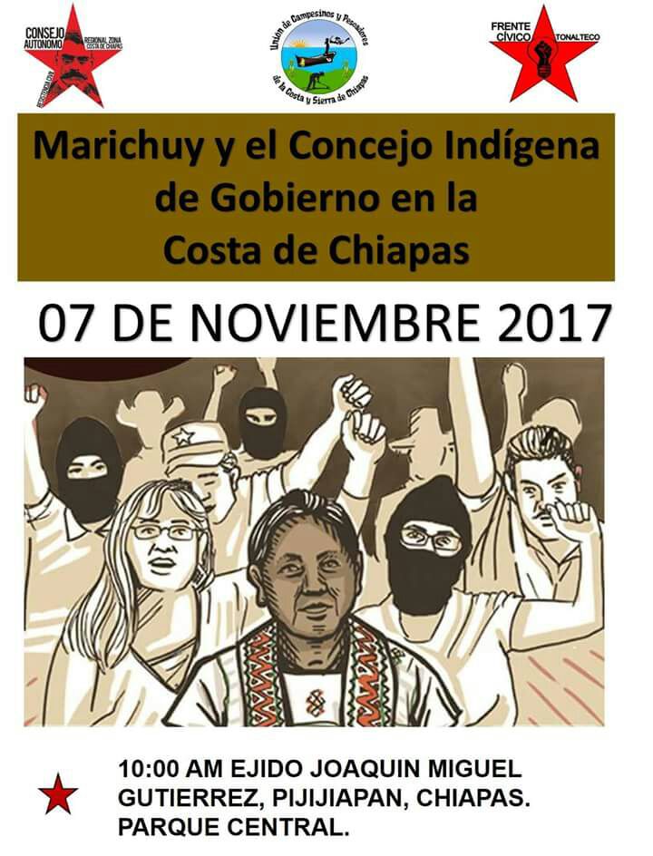 Martes 7 de noviembre de 2017 a las 10:00 am en el Ejido Joaquín Miguel Gutiérrez, Pijijiapan, Chiapas.