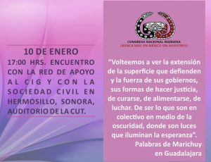 17:00 HRS. ENCUENTRO CON LA RED DE APOYO AL CIG Y CON LA SOCIEDAD CIVIL EN HERMOSILLO, SONORA, AUDITORIO DE LA CUT.