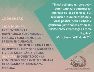 «El mal gobierno es represivo y autoritario para defender los intereses de los poderosos, que reprimen a los pueblos desde la clase política, sean partidos o gobiernos, junto con las empresas trasnacionales tanto legales como ilegales» Marichuy, Tila.