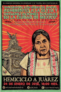El Concejo Indígena de Gobierno y su Vocera nos convocan al “Encuentro con Redes de apoyo, adherentes a la sexta y organizaciones sociales en la Ciudad de México”. Evento artístico, cultural y acopio de firmas en apoyo al CIG. De 14 a 21 horas.