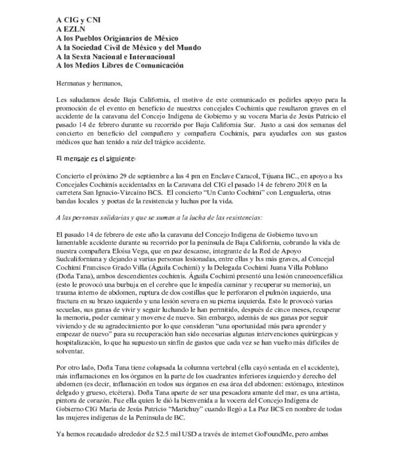 Al Pueblo de México A las Redes de Apoyo al Concejo Indígena de Gobierno A…