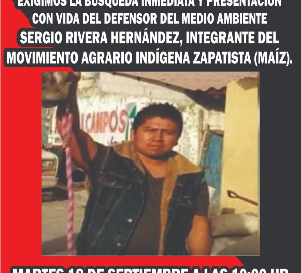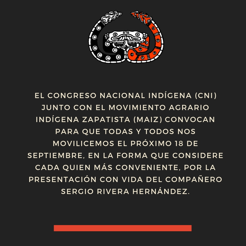 Convocatoria del CNI y MAIZ a movilización por la presentación con vida del compañero Sergio Rivera Hernández