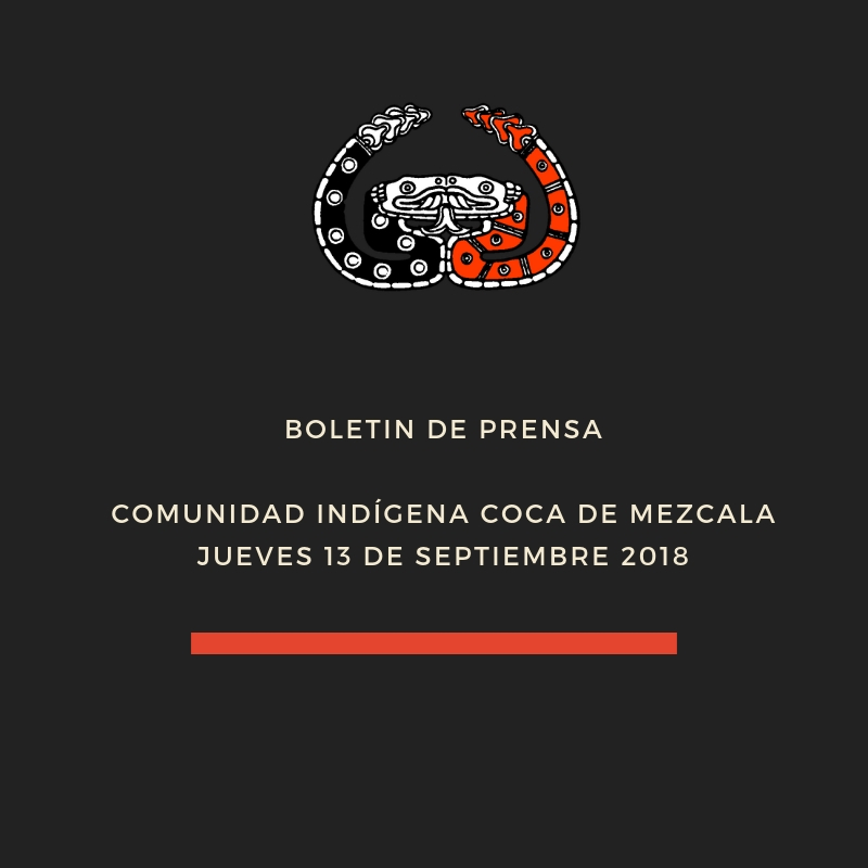 Boletín de prensa de la comunidad indígena de Mezcala, Jalisco. 13 de Septiembre de 2018