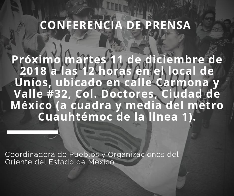 Conferencia de prensa de la Coordinadora de pueblos y Organizaciones del oriente del estado de México ante las declaraciones del gobierno federal por la construcción del NAICM