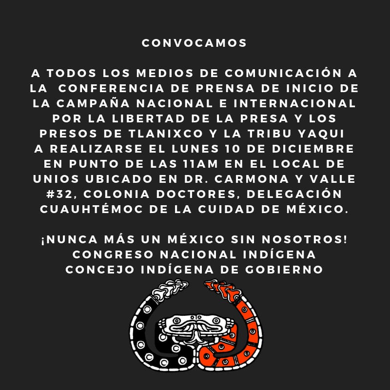PRONUNCIAMIENTO POR LA CAMPAÑA NACIONAL E INTERNACIONAL POR LA LIBERTAD DE LXS PRESXS DE TLANIXCO Y LA TRIBU YAQUI