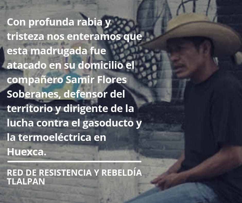 La Red de resistencia y rebeldía Tlalpan condenamos el asesinato de Samir Flores Soberanes