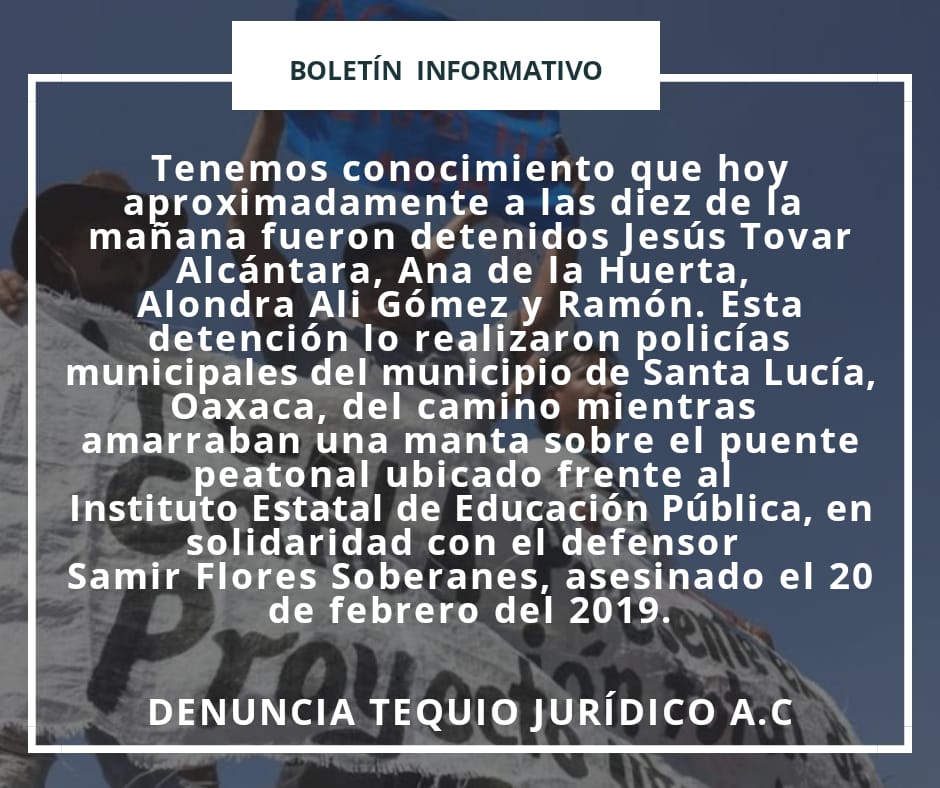 Denuncia de Tequio Jurídico A.C. ante la detención ilegal de Jesús Tovar, Ana de la Huerta, Alondra Ali y Ramón por solidarizarse con Samir Flores