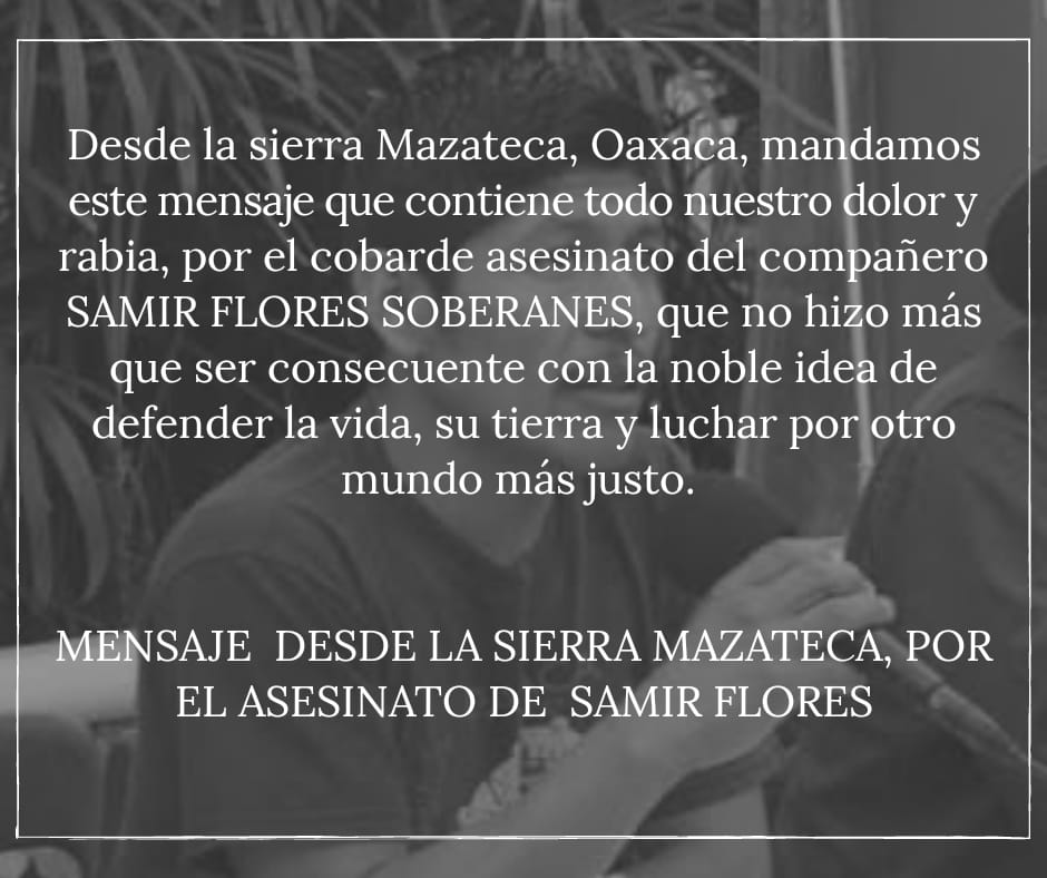 Mensaje desde la sierra Mazateca, por el asesinato de Samir Flores A LA FAMILIA DE…