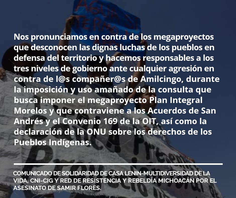 Comunicado de Solidaridad de Casa Lenin-Multidiversidad de la vida, CNI-CIG y Red de Resistencia y Rebeldía Michoacán por el asesinato de Samir Flores.