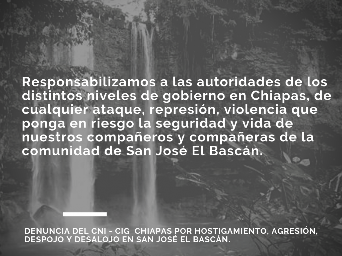 Denuncia del CNI – CIG Chiapas por hostigamiento, agresión, despojo y desalojo en San José El Bascán.
