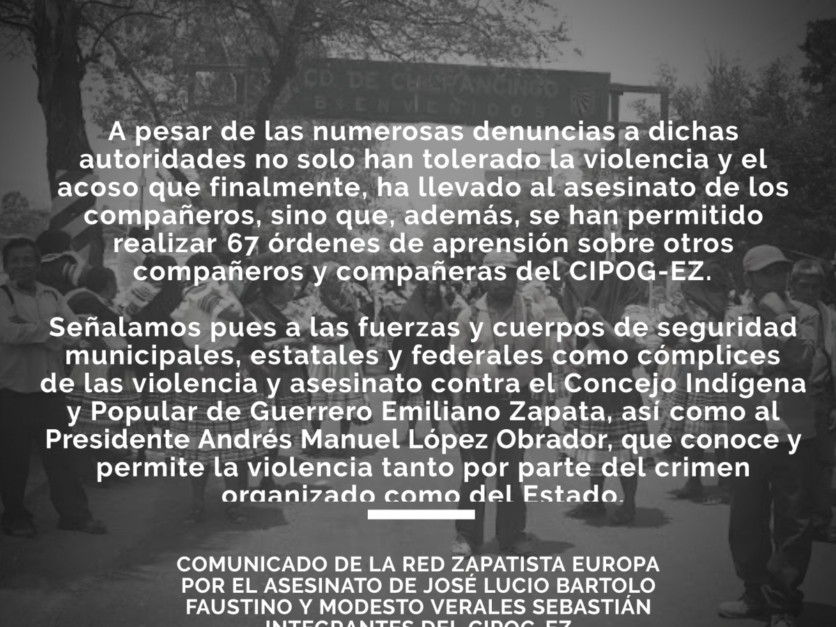 Comunicado de la Red Zapatista Europa por el asesinato de José Lucio Bartolo Faustino y Modesto Verales Sebastián integrantes del CIPOG-EZ