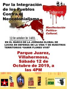 En el marco de la Jornada global de lucha en defensa de la Vida y de Nuestros Territorios “Samir Flores Vive” se convoca a Manifestación político cultural: Por la integración de los pueblos contra el neocolonialismo.