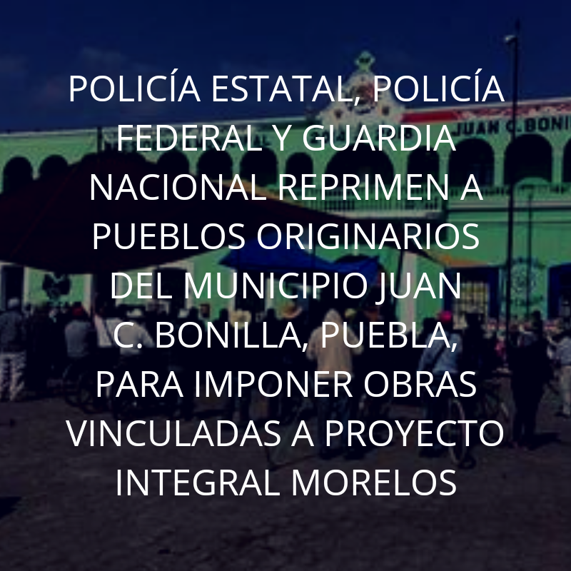 Policía Estatal, Policía Federal y Guardia Nacional reprimen a pueblos originarios del municipio Juan C. Bonilla, Puebla, para imponer obras vinculadas a Proyecto Integral Morelos