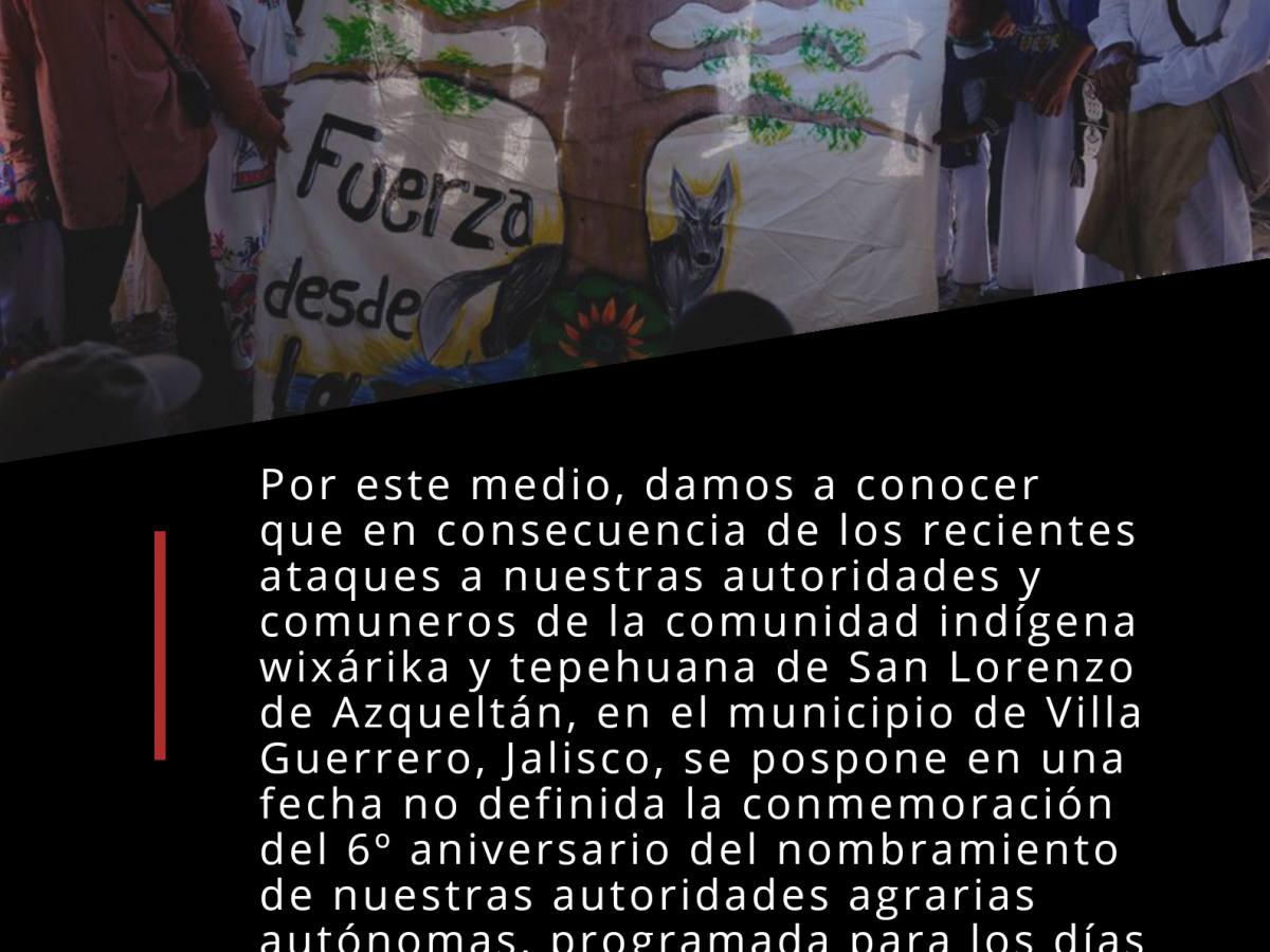 Actualización sobre los ataques a compañeros autoridades y comuneros se San Lorenzo Azqueltan, Jalisco.