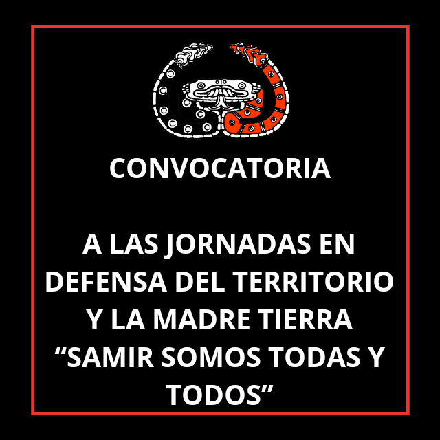 CONVOCATORIA A LAS JORNADAS EN DEFENSA DEL TERRITORIO Y LA MADRE TIERRA “SAMIR SOMOS TODAS Y TODOS”