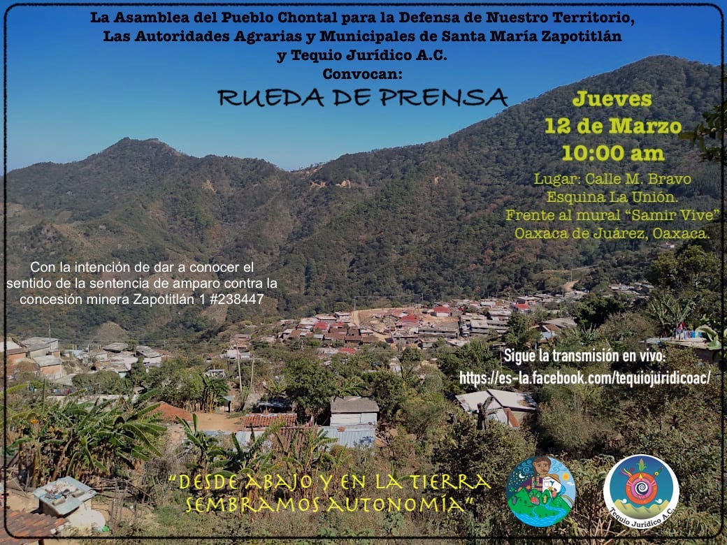 Convocatoria a rueda de prensa por la sentencia de amparo contra la concesión minera Zapotitlán