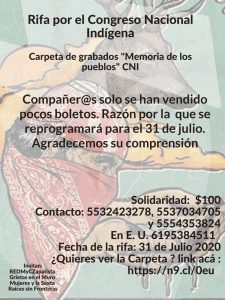 El sorteo se hará el 31 de jul de 2020 a las 8:pm a través de la página de Facebook de Redmyc Zapatista.