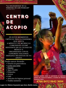 En estos momentos críticos tras la pandemia que azota a México y el mundo la comunidad Otomí residente en la ciudad de México y organizada con el Congreso Nacional Indígena necesitan de tu apoyo