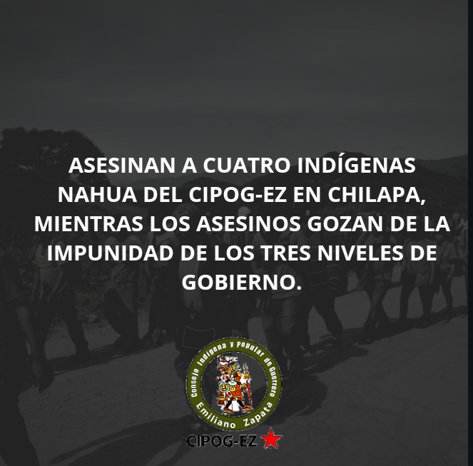 Asesinan a cuatro indígenas Nahua del CIPOG-EZ en Chilapa, mientras los asesinos gozan de la impunidad de los tres niveles de gobierno.