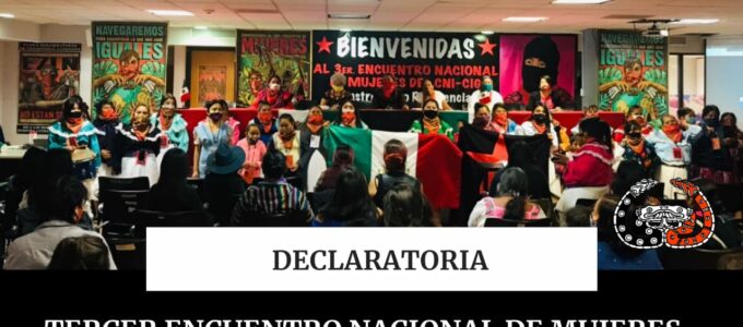 Reunidas 96 mujeres indígenas y mestizas del campo y de la ciudad, de los pueblos originarios, Binnizá’, Ñuu savi, Mazahua, Nahua, Nhönhö/Otomí y Totonaco, de los estados de Veracruz, Ciudad de México, Estado de México, Hidalgo, Querétaro, Oaxaca, Jalisco, Puebla, Morelos y Chiapas, así como compañeras de Brasil y Kurdistan. Desde la TOMA DEL INPI, … Sigue leyendo DECLARATORIA FINAL DEL TERCER ENCUENTRO NACIONAL DE MUJERES DEL CONGRESO NACIONAL INDÍGENA CONSTRUYENDO RESISTENCIAS ANTIPATRIARCALES TOMA INPI, CIUDAD DE MEXICO / 6 Y 7 DE MARZO DE 2021.