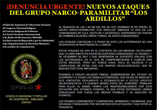 EL ACTUAL GOBIERNO DE GUERRERO SIMULA DIÁLOGO CON EL CIPOG-EZ, MIENTRAS LOS GRUPOS NARCO-PARAMILITARES Y QUIENES LOS PROTEGEN, SIGUEN IMPUNES.
