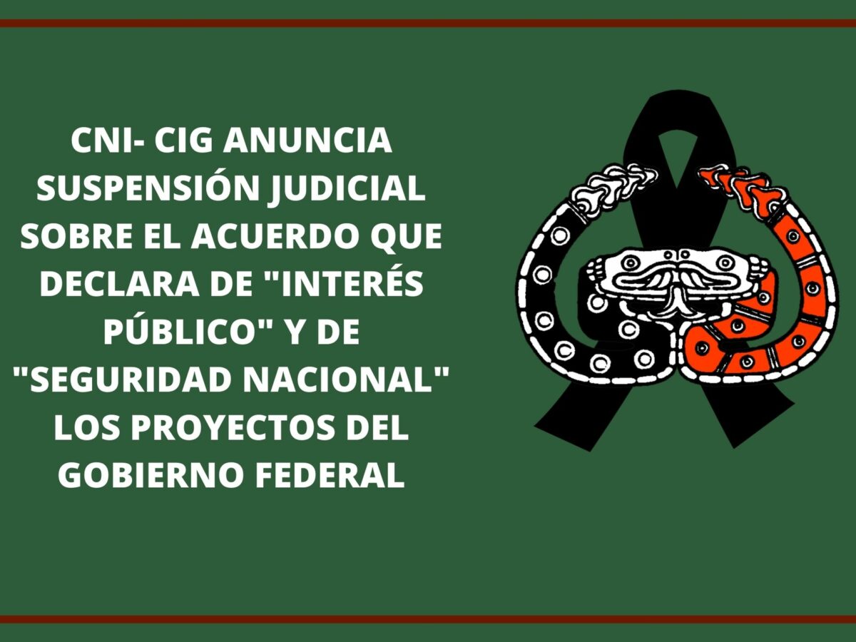 CNI- CIG ANUNCIA SUSPENSIÓN JUDICIAL SOBRE EL DECRETO QUE DECLARA DE «INTERÉS PÚBLICO» Y DE «SEGURIDAD NACIONAL» LOS PROYECTOS DEL GOBIERNO FEDERAL