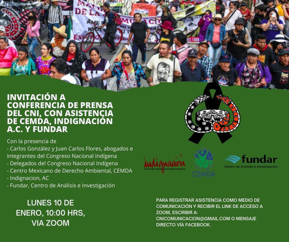 Invitación a Conferencia de Prensa del CNI, con asistencia de CEMDA, Indignación A.C. y FUNDAR