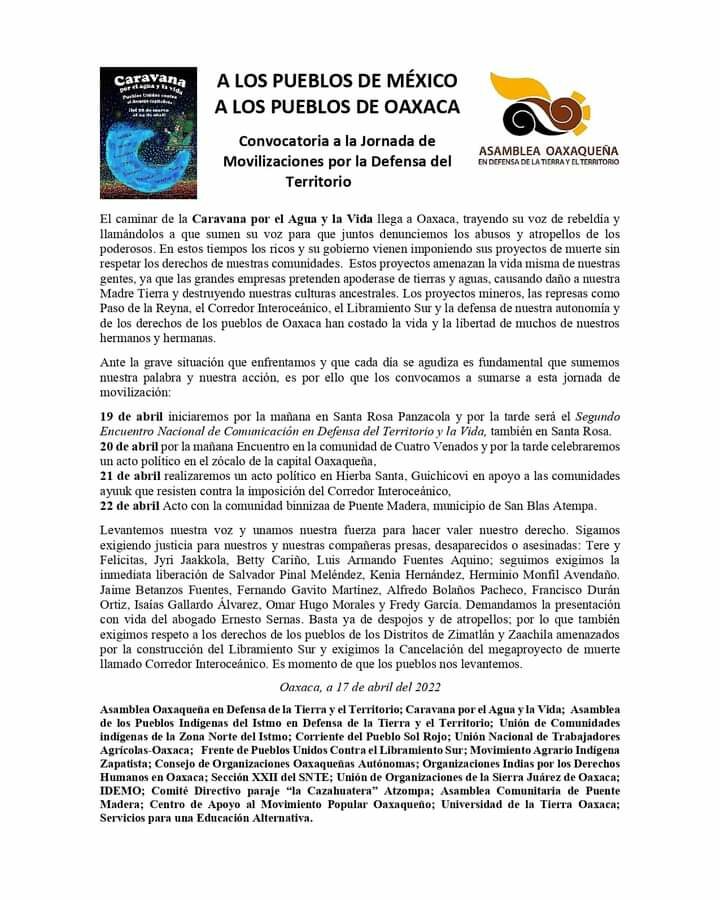 Pueblos, comunidades y colectivos del Congreso Nacional Indígena en Oaxaca, invitan al pueblo en general,…