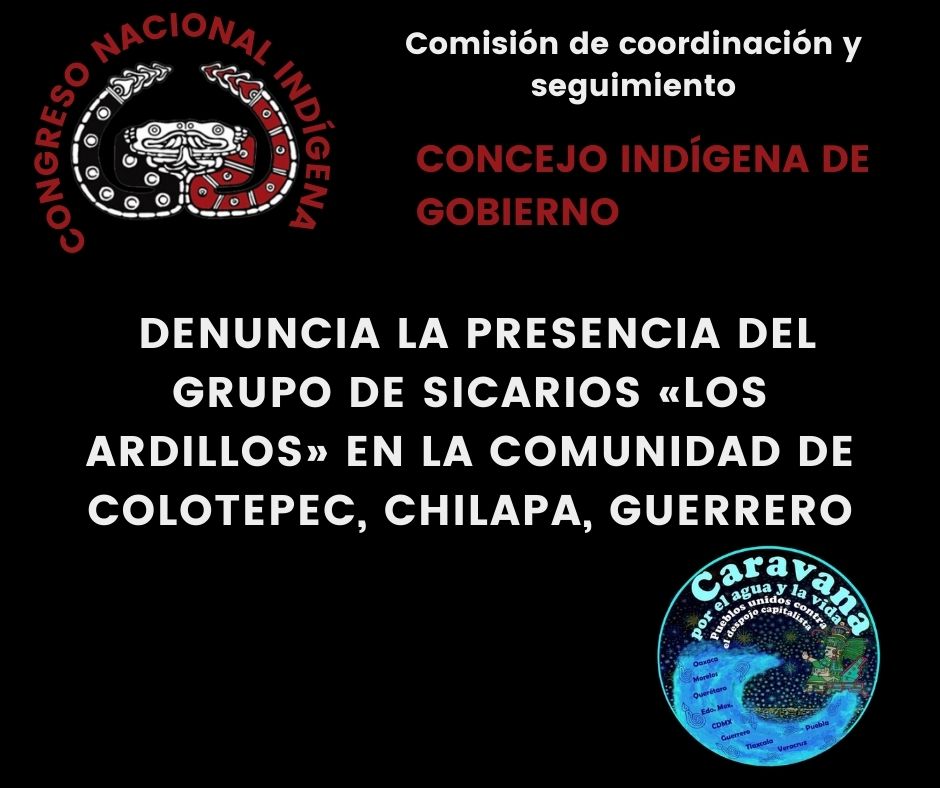Comisión de Coordinación y Seguimiento del CNI – CIG denuncia la presencia del grupo de sicarios «Los Ardillos» en la comunidad de Colotepec, Chilapa, Guerrero