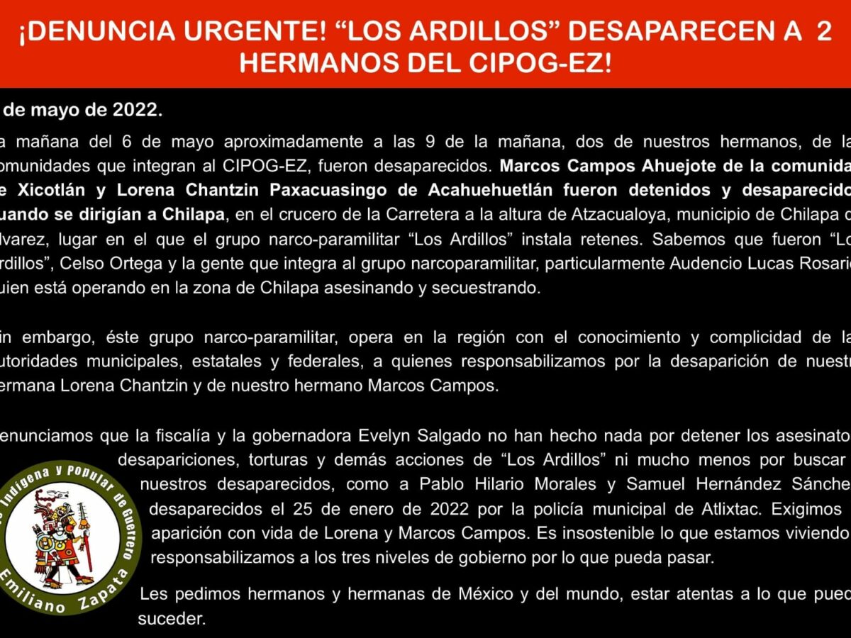 ¡DENUNCIA URGENTE! “LOS ARDILLOS” DESAPARECEN A 2 HERMANOS DEL CIPOG-EZ