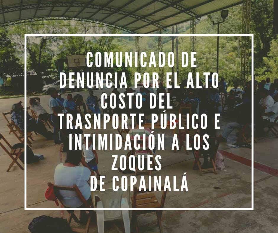 COMUNICADO DE DENUNCIA POR EL ALTO COSTO DEL TRASNPORTE PÚBLICO E INTIMIDACIÓN A LOS ZOQUES DE COPAINALÁ