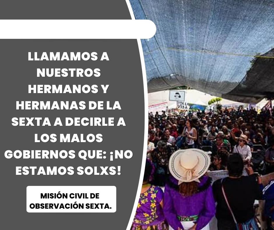 LLAMAMOS A NUESTROS HERMANOS Y HERMANAS DE LA SEXTA A DECIRLE A LOS MALOS GOBIERNOS QUE: ¡NO ESTAMOS SOLXS! MISIÓN CIVIL DE OBSERVACIÓN SEXTA.