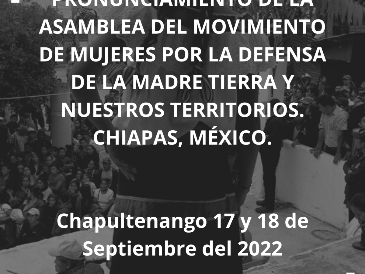 PRONUNCIAMIENTO ASAMBLEA DEL MOVIMIENTO DE MUJERES POR LA DEFENSA DE LA MADRE TIERRA Y NUESTROS TERRITORIOS. CHIAPAS, MÉXICO.