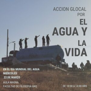 En el día mundial del agua, miércoles 22 de marzo, aula magna, Facultad de filosofía UAQ, de 10:00 a 14:00 hrs.