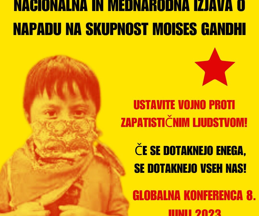Traducción Esloveno: Nacionalna in mednarodna izjava o napadu na skupnost Moises Gandhi