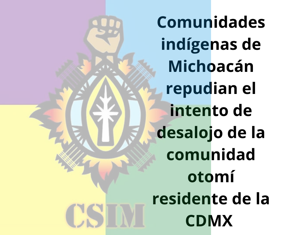 Comunidades indígenas de Michoacán repudian el intento de desalojo de la comunidad otomí residente de la CDMX.