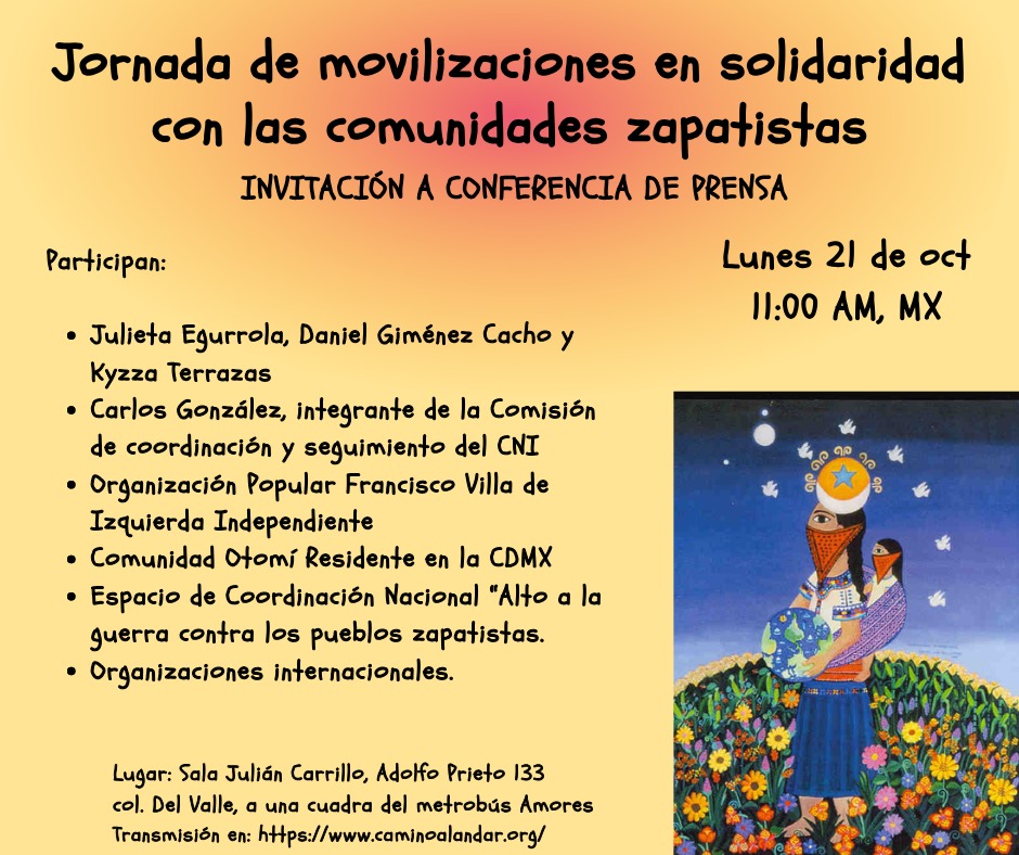 Jornada de movilizaciones en solidaridad con las comunidades zapatistas Atención periodistas, medios de comunicación, reportera…