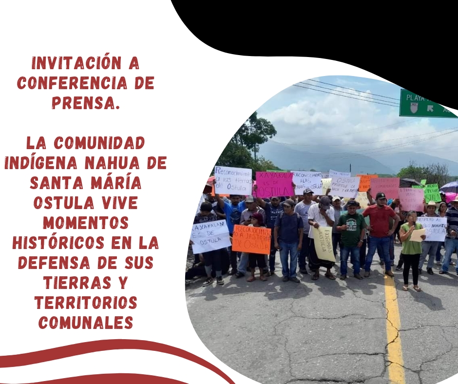 INVITACIÓN A CONFERENCIA DE PRENSA. LA COMUNIDAD INDÍGENA NAHUA DE SANTA MÁRÍA OSTULA VIVE MOMENTOS HISTÓRICOS EN LA DEFENSA DE SUS TIERRAS Y TERRITORIOS COMUNALES