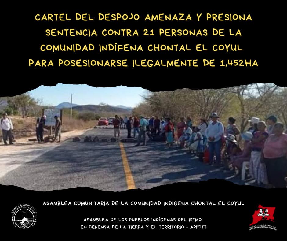 CARTEL DEL DESPOJO AMENAZA Y PRESIONA SENTENCIA CONTRA 21 PERSONAS DE LA COMUNIDAD INDÍFENA CHONTAL EL COYUL PARA POSESIONARSE ILEGALMENTE DE 1,452Ha
