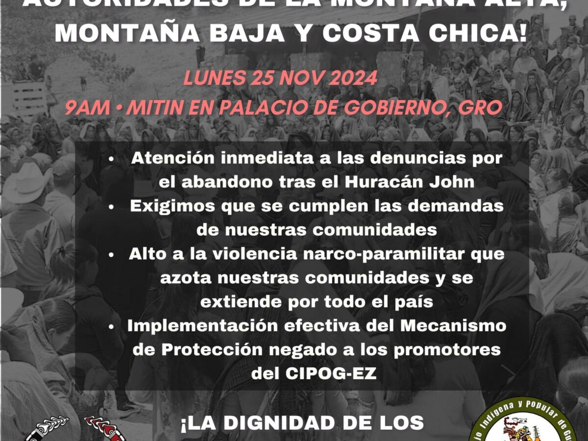 MOVILIZACIÓN URGENTE DE LAS AUTORIDADES DE LA MONTAÑA ALTA, MONTAÑA BAJA Y COSTA CHICA