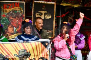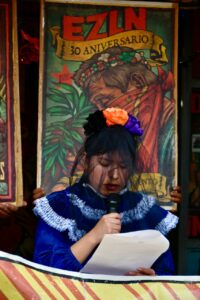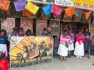 Aquí también honramos a nuestr@s herman@s del Congreso Nacional Indígena-Concejo Indígena de Gobierno, que han sido asesinados por defender el agua, la tierra, el territorio y la vida; por oponerse a los mal llamados megraproyectos de muerte como el Tren Maya, el Corredor Interoceánico, el Proyecto Integral Morelos que le costo la vida a nuestro hermano Samir Flores Soberanes.