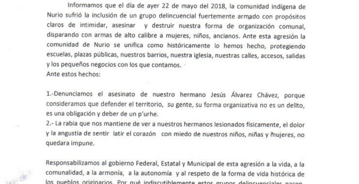 Al pueblo de México y del mundo Con dolor y rabia, pero también con una urgencia de justicia, el CNI- CIG manifestamos nuestro apoyo y solidaridad a la comunidad purépecha de…