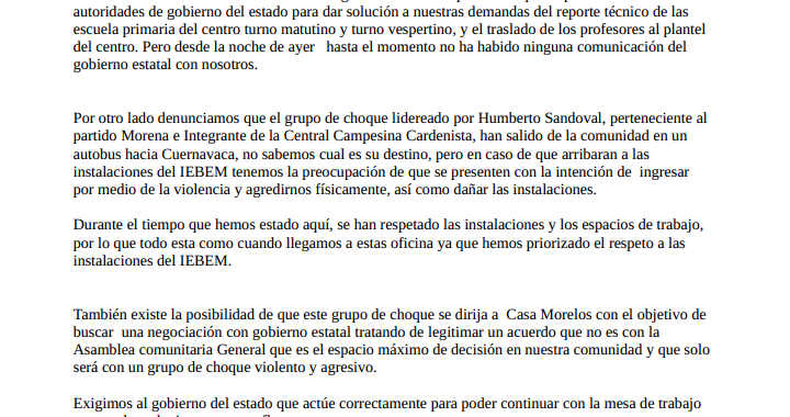 Siendo las 13:30 los habitantes de Amilcingo continuamos esperando a que se presenten las autoridades de gobierno del estado para dar solución a nuestras demandas del reporte técnico de las escuela primaria del…