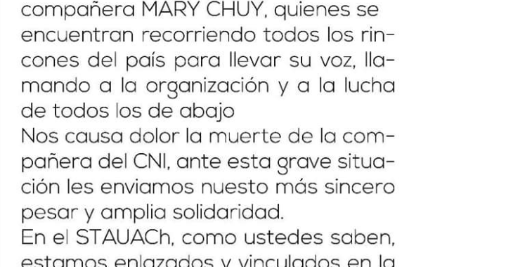 Estimados compañer@s nuestro sindicato de maestros de Chapingo (STAUACh) expresamos nuestro pesar por el lamentable accidente que sufrieron los integrantes de la caravana del CNI y su Vocera, la valerosa compañera Marichuy,…