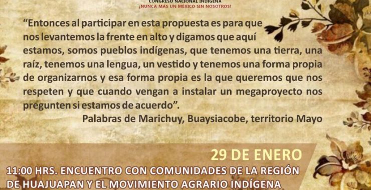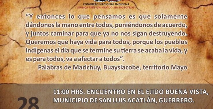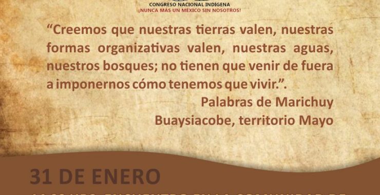 «Creemos que nuestras tierras valen, nuestras formas organizativas valen, nuestras aguas, nuestros bosques; no tienen que venir de fuera a imponernos cómo tenemos que vivir». Marichuy, Buaysiacobe, Territorio Mayo MIÉRCOLES 31…