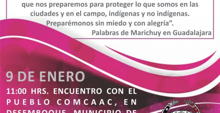 RECORRIDO ENERO 2018 8 DE ENERO 14:00 HRS. ENCUENTRO CON EL PUEBLO TOHONO ODAM EN PUEBLO VIEJO, MUNICIPIO DE CABORCA, SONORA. 9 ENERO 11:00 HRS. ENCUENTRO CON EL PUEBLO COMCAAC,…