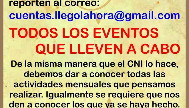 Llamado a las Redes de Apoyo al CIG y su vocera Marichuy Necesitamos que todas las redes de apoyo a Marichuy reporten al correo:cuentas.llegolahora@gmail.comtodos los eventos que lleven a cabo. De la…