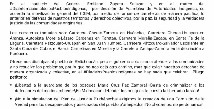 AQUÍ NO TE ENTERRAMOS, AQUÍ TE SEMBRAMOS MI GENERAL ZAPATA! A LAS COMUNIDADES Y PUEBLOS ORIGINARIOS AL INSTITUTO ELECTORAL DE MICHOACÁN AL PUEBLO DE MÉXICO Y DE MICHOACÁN A LOS MEDIOS DE…